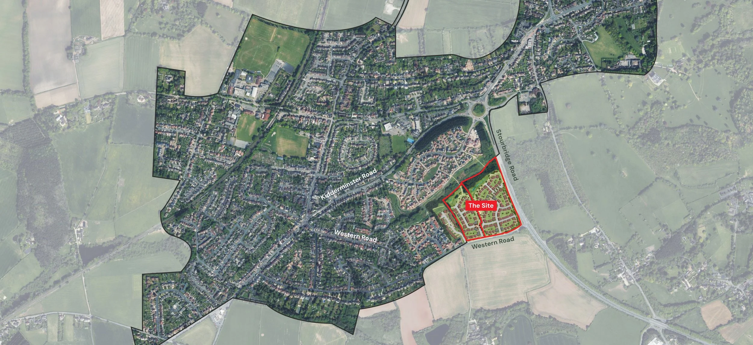 The site is bound by the A491 Stourbridge Road to the east and Western Road to the south. Gallows Brook is located to the north of the site and sits in a valley that separates the site and existing residential development. Further residential development lies to the west. Therefore, the site forms a logical completion of the built form in this location.